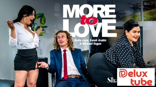 Intro and script of the movie: A boss, Michael Vegas, calls his wife, Sarah Arabic, to cancel their lunch date, claiming to be too busy. However, he's actually having an affair with his sexy secretary, Karla Lane!Michael and Karla start fooling around in his office, but barely avoid being caught when Sarah suddenly shows up with takeout as a romantic surprise. Sarah claims that she doesn't have cutlery, so Michael leaves to get some. Sarah then uses the opportunity to tell Karla she KNOWS about the affair... BUT she thinks Karla is hot, so then THEY start fooling around instead...When Michael returns and catches them, he's shocked. That's when Sarah tells him that if he wants to be forgiven for his adulterous ways, they'll have to SHARE Karla from now on. With that, they have a scorchin' threesome!